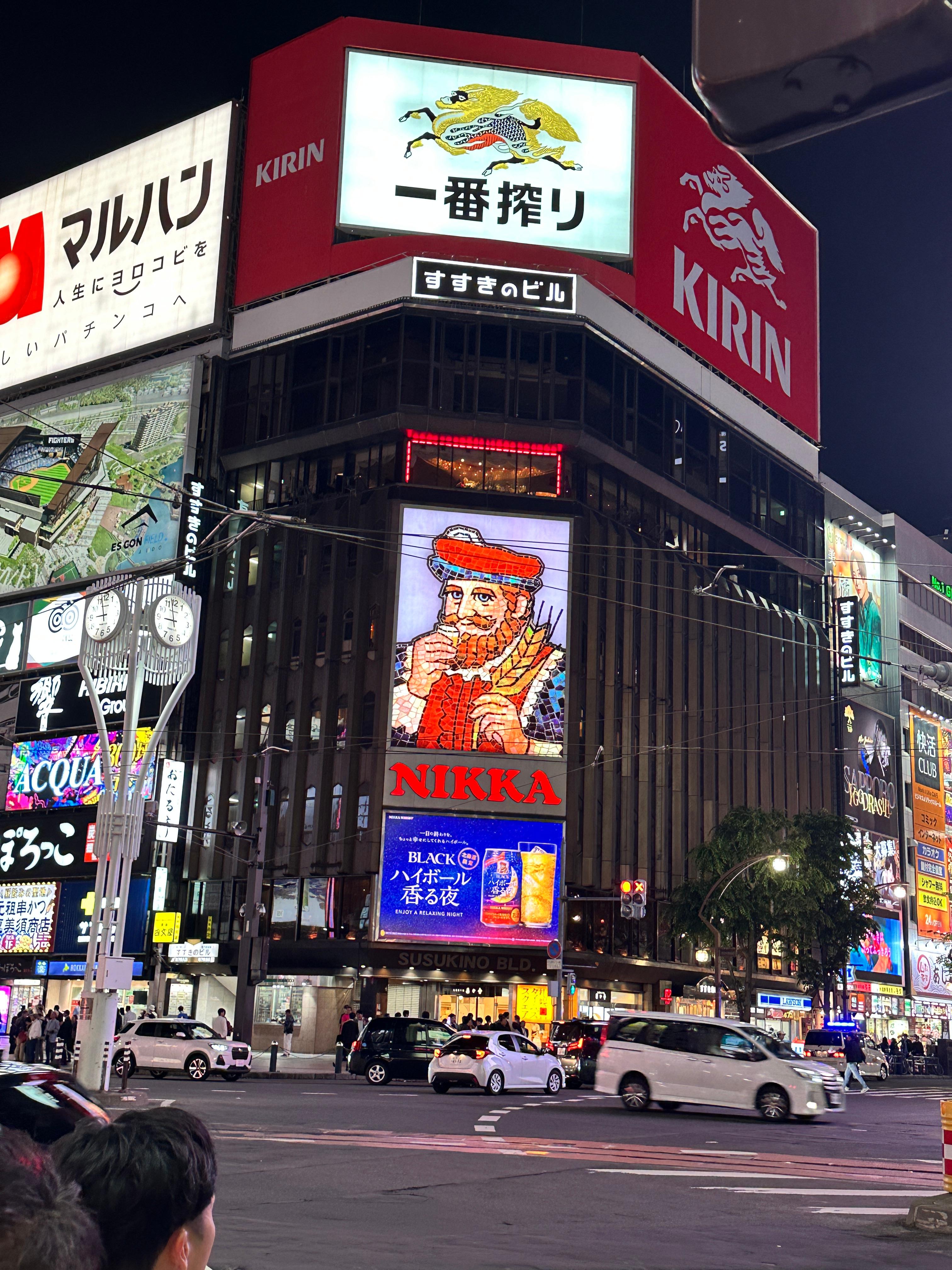 해가 져서 불 켜진 스스키노 빌딩~~~