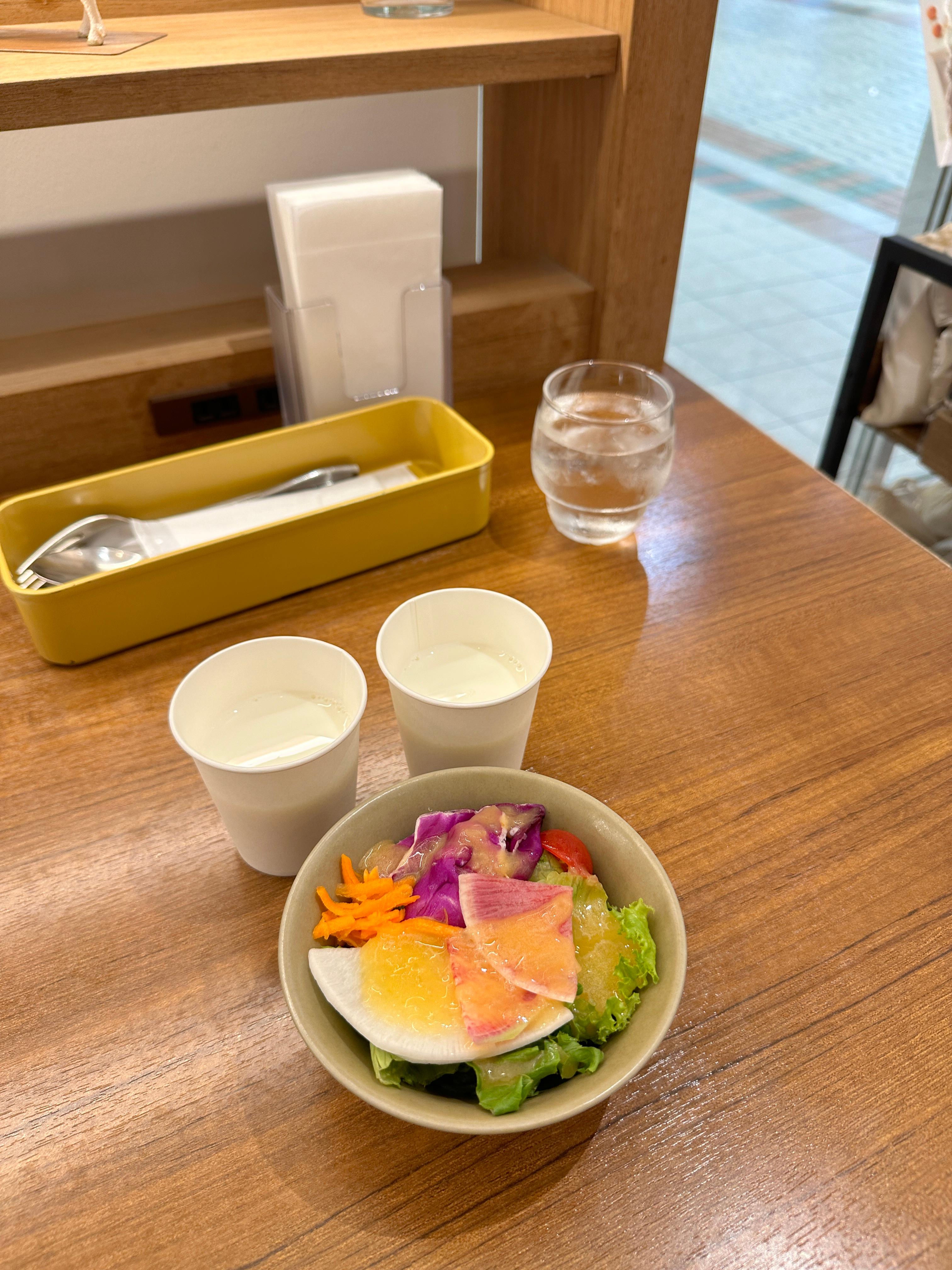 처음에 샐러드가 나왔는데 우유를 2잔이나 받음. 내가 주문선택을 잘못했나보다;;ㅋㅋㅋㅋ